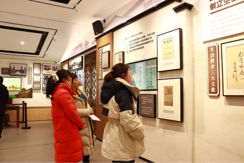 改陈布展、重新开馆的陶行知纪念馆以“馆园一体”为特色,通过多媒体互动、沙雕沙盘、实物展品等创新形式,全方位呈现陶行知先生“生活即教育”“教学做合一”的教育理念与救亡图存、深耕教育的生平历程。在讲解员的引导下,党员们依次参观各展区,从珍贵文献资料中感悟先生的教育初心,从互动体验中领会“社会即学校”的深刻内涵,沉浸式感受先生“千教万教教人求真,千学万学学做真人”的精神真谛。