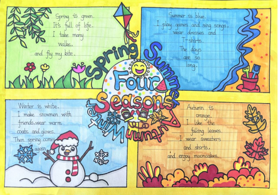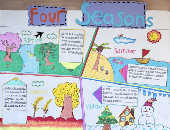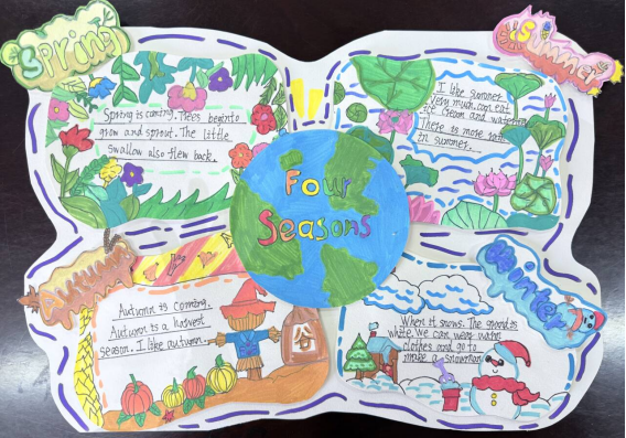 在创作过程中,同学们化身小小设计师:有的认真查阅资料,有的精心挑选图片,有的反复推敲英文表达。五彩斑斓的色彩、灵活流畅的线条、工整美观的英文字体,让一张张白纸变成了主题鲜明、内容丰富、设计新颖的英文手抄报。