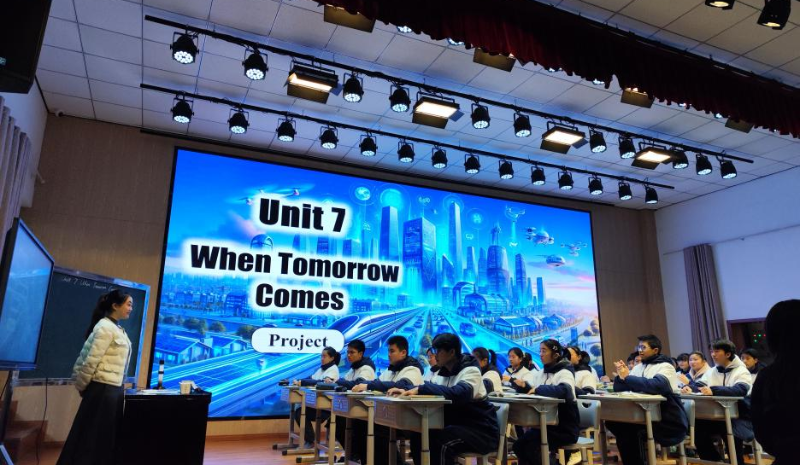 活动当日上午,屯溪四中吴思老师代表课题组,以八年级上册Unit7《When tomorrow comes》Project(Period1)为题呈现精彩展示课。课堂上,吴老师紧扣“导-师-制+”核心理念,立足课题组前期研究成果,以“未来城市构建”真实问题为驱动,生动诠释了项目化学习“以学生为中心、在做中学”的本质特征,本节课巧妙的教学设计与鲜活的课堂互动,充分展现了屯溪四中课题组在PBL教学模式上的扎实探索,为参会教师提供了可借鉴的实践范本。