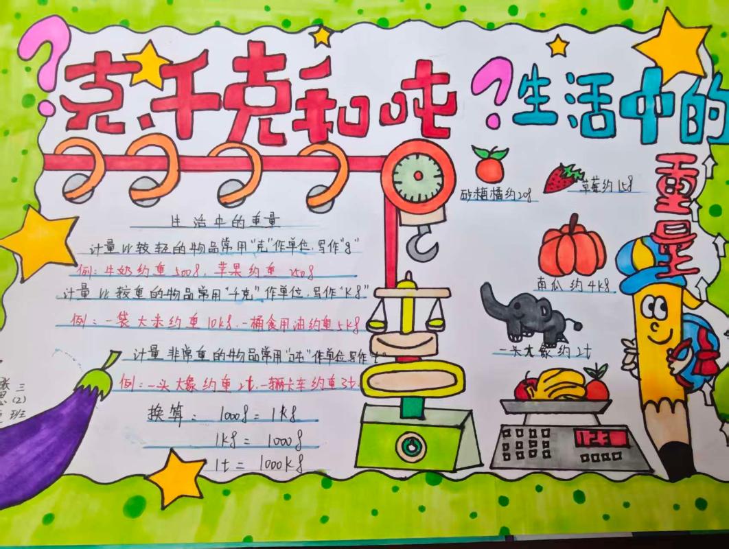 为让抽象的质量单位变得可感可触,激发学生对数学知识的探索热情,近日,黄山市新潭小学三年级数学组以“质量单位之旅”为主题,开展了创意小报实践活动。同学们化身“小小测量家”,在动手操作、记录观察、思考总结中,解锁质量单位的奥秘,用多彩小报呈现了一场别开生面的数学实践之旅。