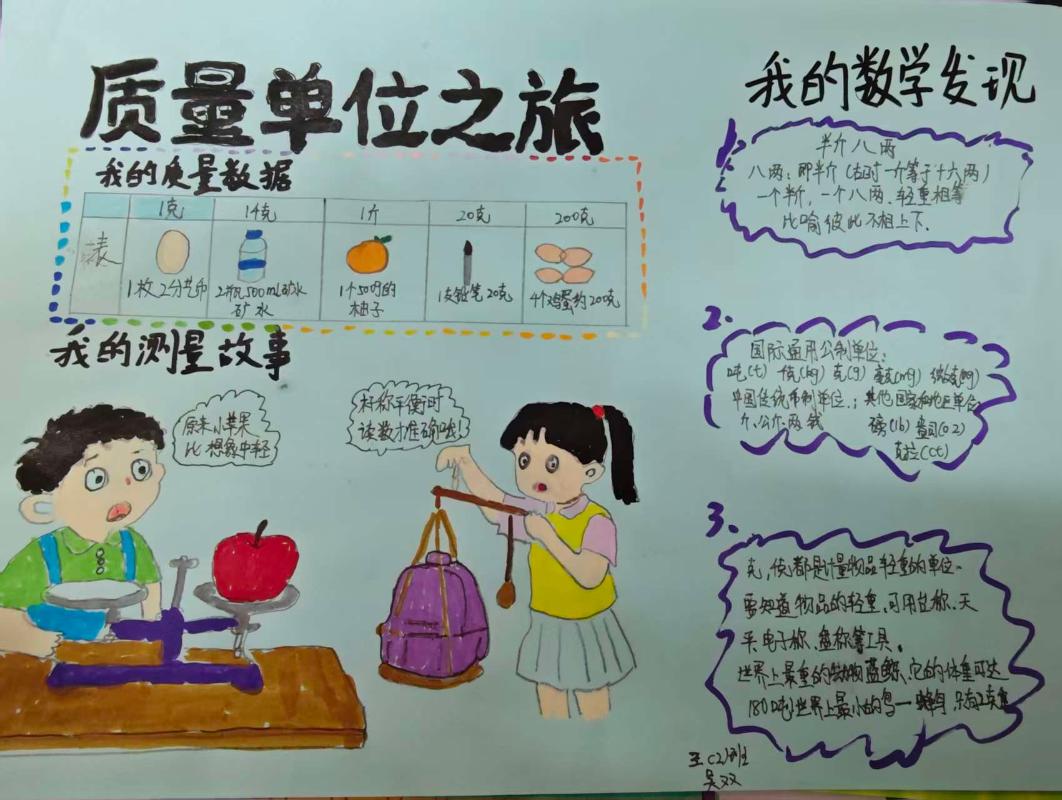 本次“质量单位之旅”创意小报活动,打破了数学课堂的边界,让学生在实践中理解知识、在探索中提升能力。同学们不仅熟练掌握了质量单位的相关知识,更培养了观察能力、动手能力和创新思维,深刻体会到“数学源于生活、用于生活”的道理。一张张色彩鲜明、内容丰富的小报,既是学生实践成果的展示,更是数学学习乐趣的传递。