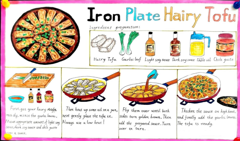 日前,在全体师生的共同期待与努力下,优秀作品在校园宣传栏集中展出。从地道的英语表达、清晰的制作步骤,到新颖的版面设计、鲜活的手绘创意,每一份作品都展现了学生们的巧思与用心。