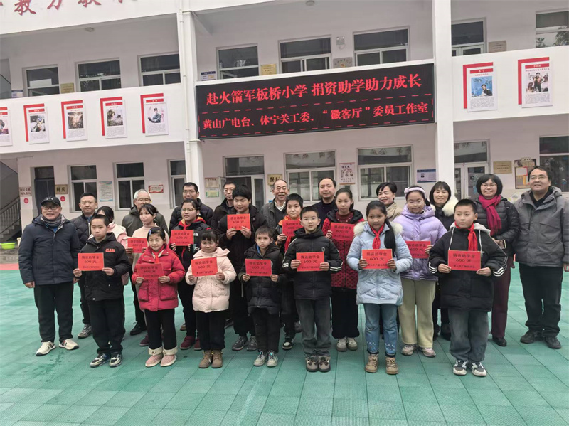为深入关心下一代成长,助力乡村教育发展,2026年1月29日,黄山广电台、休宁县关心下一代工作委员会及“徽客厅”委员工作室一行,怀着对乡村孩子们的深切关爱,来到火箭军板桥小学,开展了一场温暖人心的捐资助学活动。