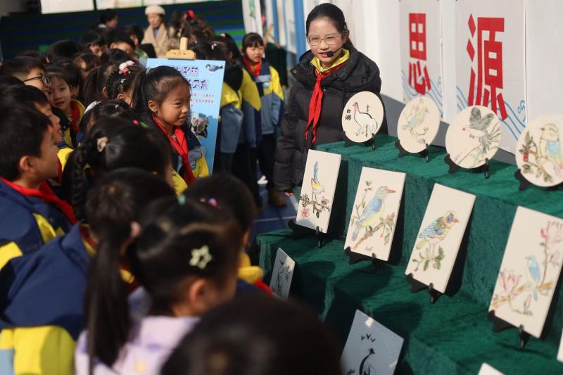 地域文化锚定策略精准挖掘本土资源,以阊江为主线,串联桥、鱼、植物、鸟类、山河等自然景观,整合非遗、美食、中医药、码头文化等人文瑰宝,形成12个特色课程板块,让祁门的古道码头、祁红产业、生态资源成为鲜活教材。跨学科融合策略打破学科壁垒,严格落实新课标不少于10%课时用于跨学科活动的要求。在祁红文化探究活动中,语文英语学科开展读写与广告语设计,科学学科探究种植原理,劳动学科实践采茶制茶,实现“语言运用”与“综合实践”深度融合。多样实践活动策略构建分层分类体系,涵盖体验型、探究型、创新型及社会服务型活动,每年五月、十二月固定为“若水少年活动月”,实施场所贯通校内与校外研学基地、博物馆、公园等,四年级“瓷石与鸟的碰撞”活动特邀景德镇陶瓷大学毕业的博物馆专家现场指导,每年常态化组织研学活动,让学生在真实场景中增长才干。同时落实“导-师-制+”模式,组建跨学科导师团队,开展《当纸遇见茶,非遗的对话》等主题教学,引导学生从文化学习者转变为文化传播者。