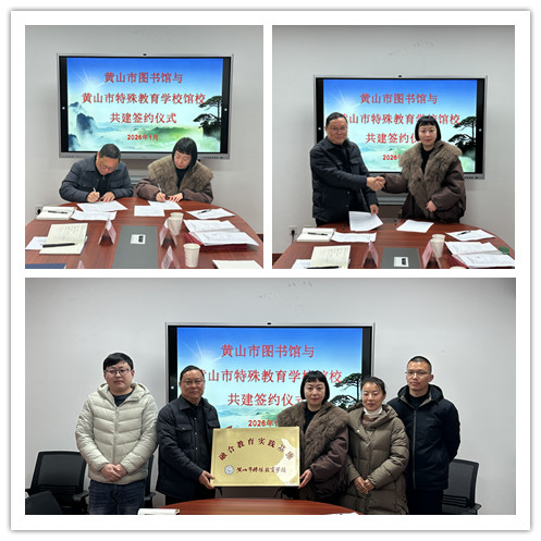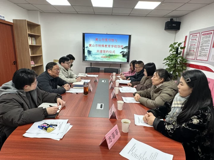 为深入推进融合教育发展,搭建文化育人与特殊教育协同共进的桥梁,1月28日上午,黄山市特殊教育学校与黄山市图书馆共建活动在市图书馆隆重举行。市图书馆及市特殊教育学校相关代表齐聚一堂,以“导-师-制+”为核心纽带,共话特殊学生成长路径,共促融合教育落地见效。