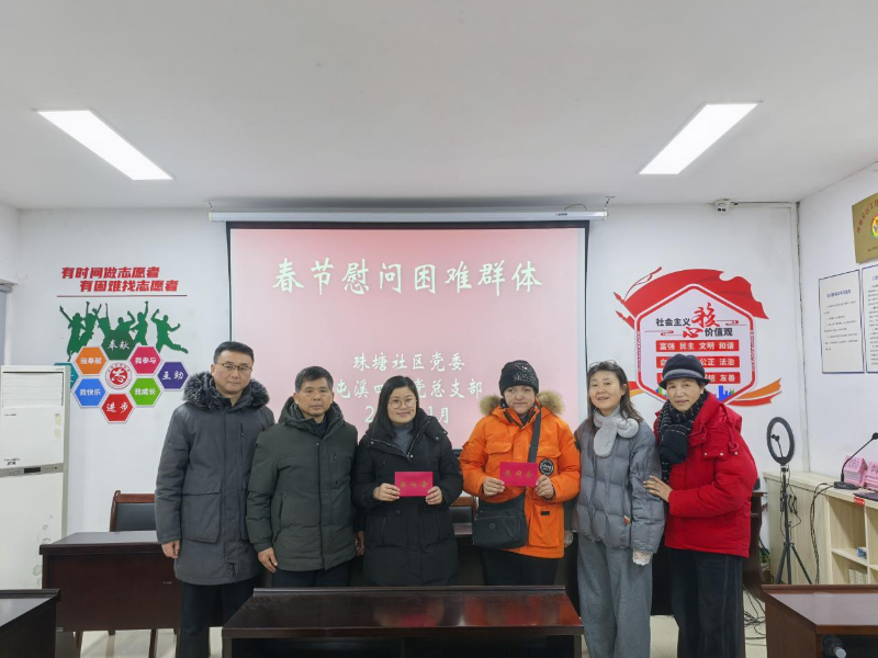 随后,慰问组一行辗转来到珠塘社区,深化帮扶机制,传递冬日温情。慰问组为社区送上了50副寓意吉祥的春联,为即将到来的新春佳节增添了浓厚的节日氛围,也将学校的美好祝福送到社区群众手中。同时,针对社区内2名困难人员,为他们送上精心准备的慰问品,细致了解其生活现状与实际需求,鼓励他们保持乐观心态,积极面对生活,让困难群众在寒冬中感受到党组织的温暖与牵挂。