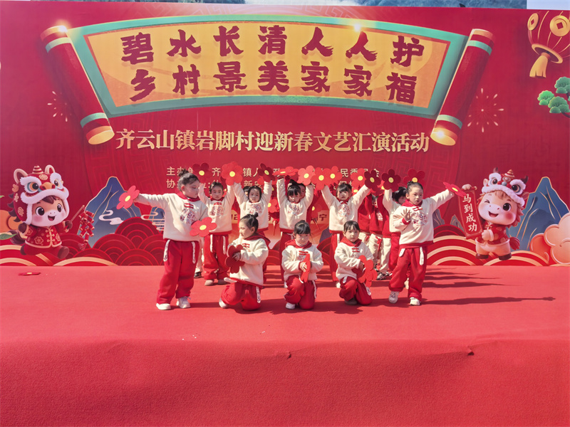 2月12日,休宁县齐云山镇岩脚村新春联欢会启幕,齐云山小学42名儿童登台献艺,带来舞蹈《送你一朵小红花》和瓶子韵律操,用童真活力为村民送上新春祝福,彰显“导师制+教联体”育人成效。