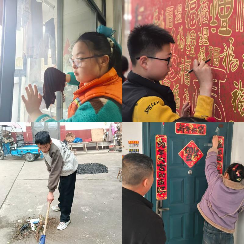 中年级段聚焦“习俗体验与劳动教育”深度融合,发挥“导-师-制+实践”优势,由首席导师精准对接学生,明确活动目标与要求,全程跟踪指导学生及家长参与实践。通过线上打卡、一对一反馈等方式,引导学生了解“扫尘”的传统寓意,指导学生在家长的陪伴下参与家庭清洁劳动,培养劳动习惯;在“创意春联DIY与张贴”活动中,教师提前推送春联书写技巧、张贴规范等内容,线上指导学生与家长合作制作春联,鼓励学生记录劳动过程、分享实践感受,在动手实践中感悟传统习俗的魅力,提升生活实践能力。