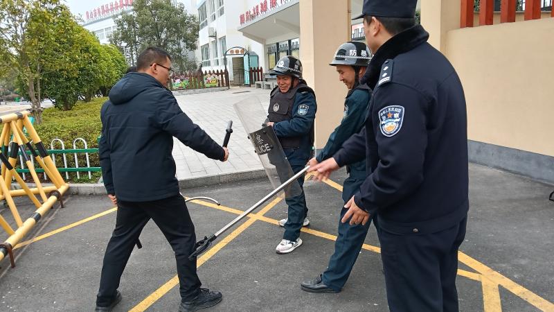 培训环节,派出所民警首先对安保人员执勤中的法律边界与权责范围进行详细解读;同时结合开学后校园可能面临的持械滋扰、冲撞校门等各类突发情况,现场示范盾牌、钢叉等防护器械的协同使用方法。随后,组织保安人员开展“多对一”对抗模拟战术实操演练,通过实战化训练,强化了保安人员的快速反应能力和团队配合能力,有效提升了校园应对突发事件的实战处置水平,确保能够妥善处置各类校园安全事件。