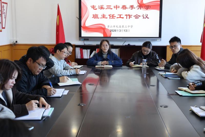 3月13日下午,屯溪三中在会议室召开春季学期班主任工作会议。德育处、教导处相关负责人,分管副校长刘雪梅,校长黄旭及全体班主任参加会议。