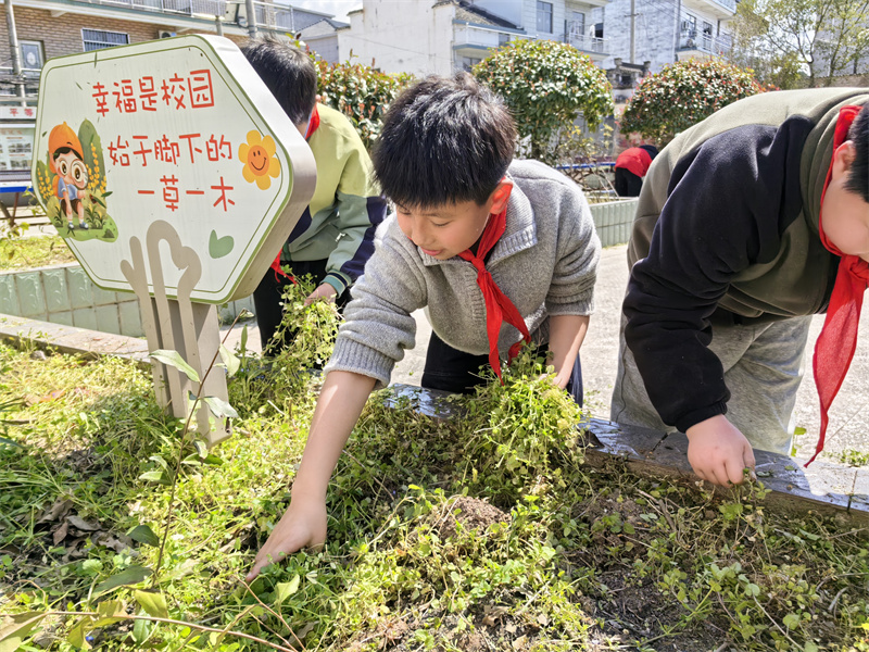 3月12日植树节当天,商山小学组织全体学生开展“爱绿护绿 美化校园”主题实践活动,同学们走进校园花坛,以拔草、种花、浇水的实际行动为校园增添生机。