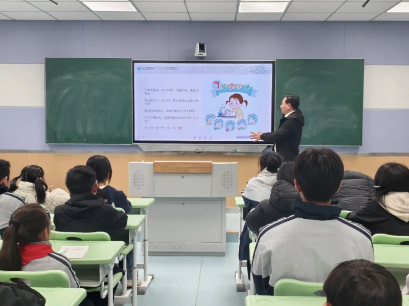讲座中,社会导师、黄山首康医院呼吸科洪宇泽副主任医师结合春季气候特点与校园人群密集的实际情况,用通俗易懂的语言,围绕流感、诺如病毒、水痘、手足口病等春季常见传染病,详细讲解了各类疾病的传播途径、典型症状与危害。同时,重点普及“早发现、早报告、早隔离、早治疗”的防控原则,让学生清晰掌握传染病防控核心要点。