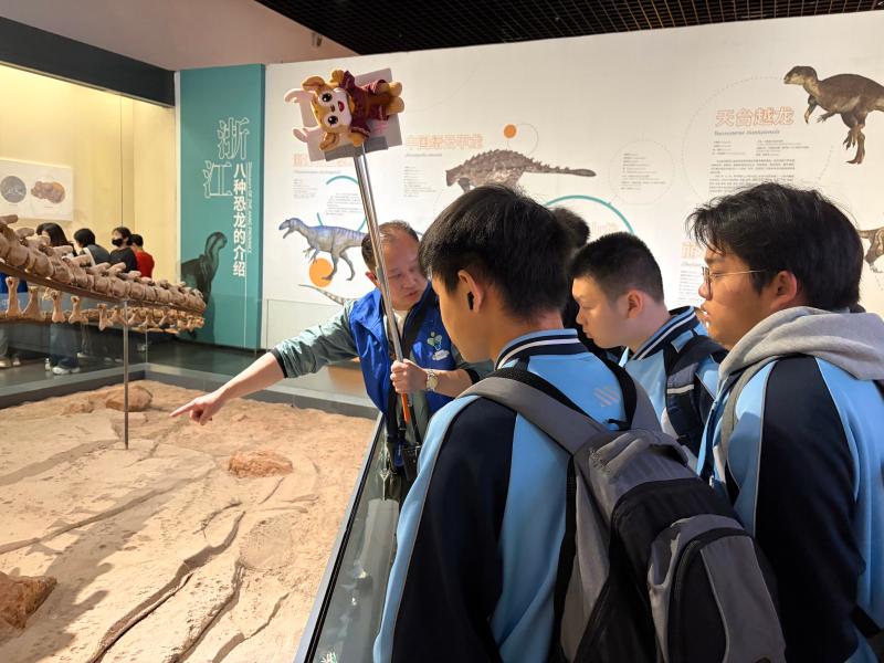 上午,研学队伍首先抵达衢州孔氏南宗家庙,这座“东南阙里”的千年圣境,古柏苍劲间承载着孔氏南宗的文化传承。同学们驻足大成殿、思鲁阁前,聆听孔氏南渡的历史,感悟儒家文化的仁爱与礼序,在潜移默化中接受传统文化的熏陶。随后,大家走进衢州博物馆,馆内“礼贤江山龙”化石、商周印纹陶等藏品,生动诉说着衢州六千年的文明脉络,让同学们直观感受衢州的历史底蕴。
