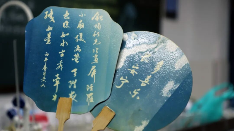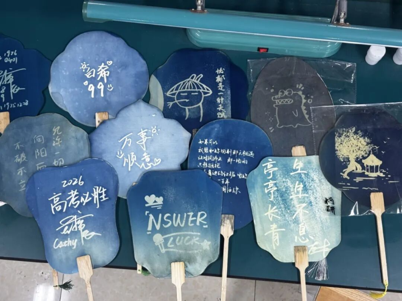 在掌握基础制作技巧后,同学们充分发挥创意,用文字与图案设计出风格各异的蓝晒作品,或将成品制作成书签、装饰画等文创小物。大家将化学、光学知识与艺术创作相结合,既加深了对蓝晒工艺的理解,也在实践中激发了创新思维。