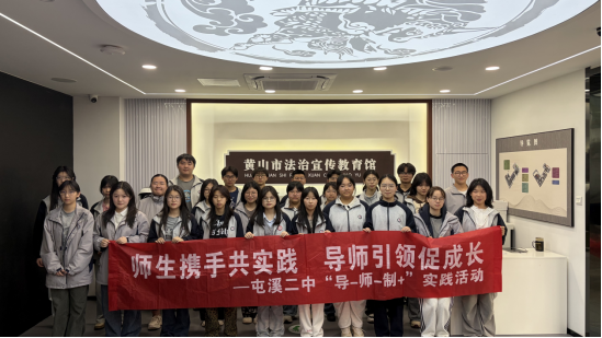 此次走进黄山市法治宣传教育馆,是屯溪二中在“导-师-制+”工作机制下,深化法治教育、创新思政育人的重要实践。学校始终坚持立德树人根本任务,以“行走的思政课”为载体,将课堂延伸至社会大课堂,让法治精神在沉浸式体验中润物无声地入心入脑。