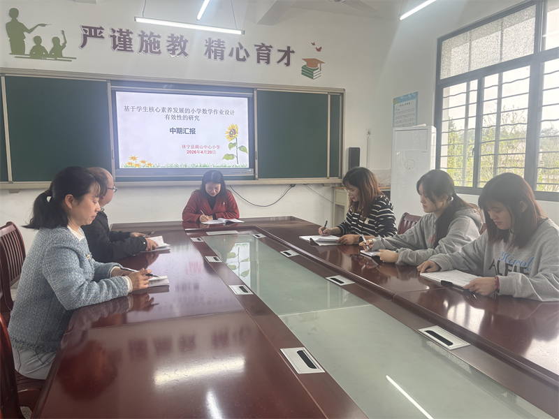 近日,商山小学课题组《基于学生核心素养发展的小学数学作业设计有效性的研究》课题中期汇报会顺利召开。学校教学分管领导、教科室负责人及全体课题组成员参与活动。