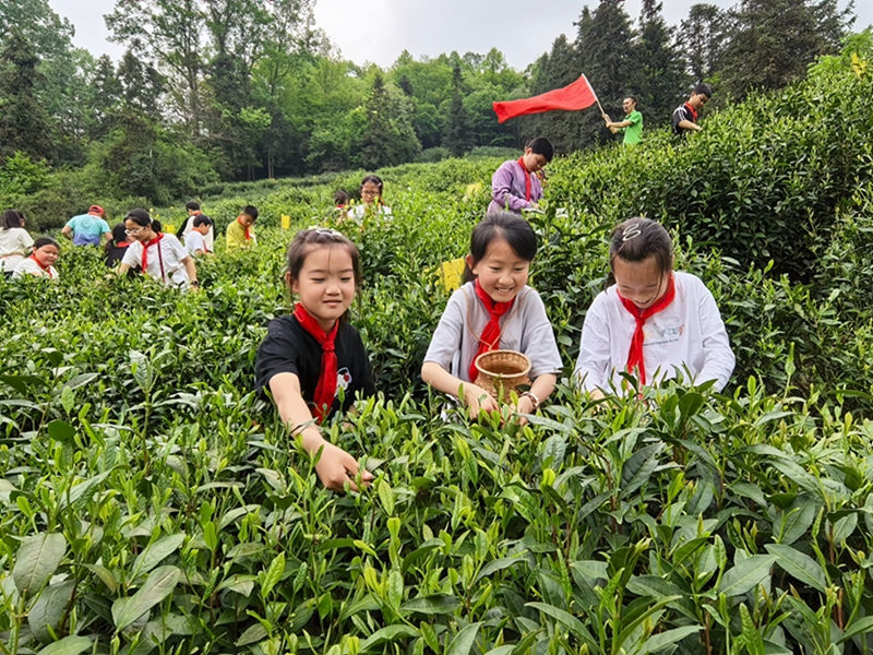 黟县美溪乡中心小学走进弋江源开展石墨茶研学之旅:沉浸式体验茶叶采摘的田间乐趣,观摩手工杀青与现代化制茶流水线的碰撞融合,静心品鉴茶艺的雅致韵味。学生们在知行合一中领悟工匠精神,为传承家乡非遗文化播下希望的种子。