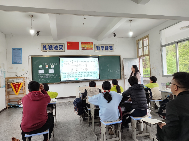 随后,两校教师们深入课堂,观摩了倪婷婷老师执教的五年级数学课《分数的基本性质》和谢培利老师执教的六年级思政课《我国自然灾害知多少》。课后,授课教师与听课教师开展观课议课活动,大家以新课标理念为指引,聚焦课堂教学细节,畅谈教学思路,点评教学亮点,分享教学经验,在共情共鸣和思维碰撞中研究凝练,提升专业水平。