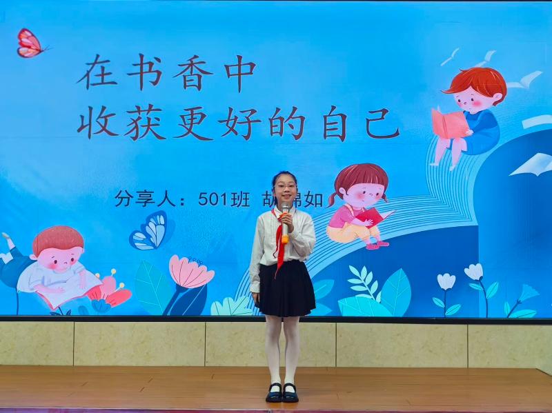 分享环节结束后,主持人对本次活动进行总结寄语,充分肯定同学们的精彩表现,鼓励大家将阅读养成习惯,让书香飘满校园每个角落,做爱读书、读好书、善读书的祁山好少年。
