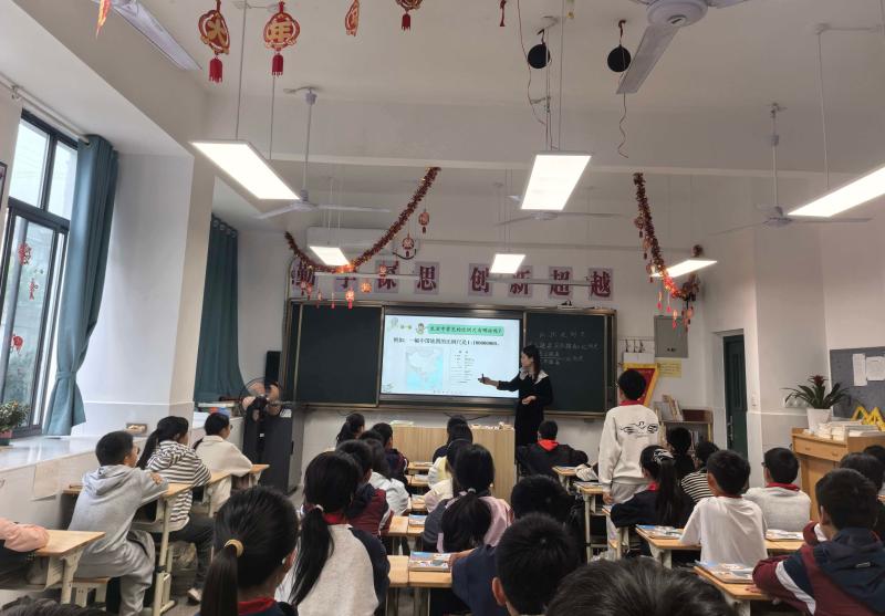 宋督学首先走进六(2)班数学课堂,随堂听取了叶淑娴老师执教的《认识比例尺》一课。课堂上,叶老师以地图为切入点,引导学生通过测量、计算与比较,层层递进地理解比例尺的含义及其实际应用。课后,宋督学与叶教师进行了面对面交流。他充分肯定了教师注重生活实际、体现数学应用价值的教学设计;同时,就AI赋能教育教学提出了具体建议。