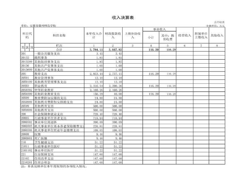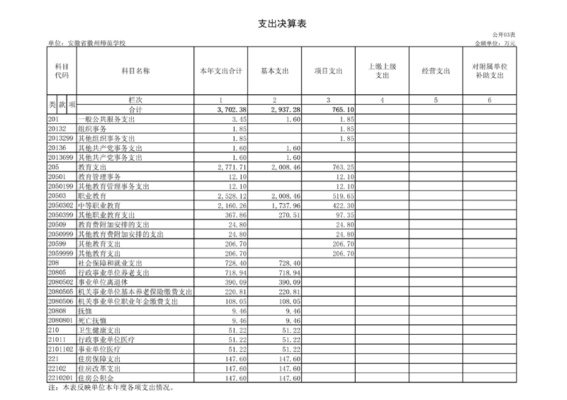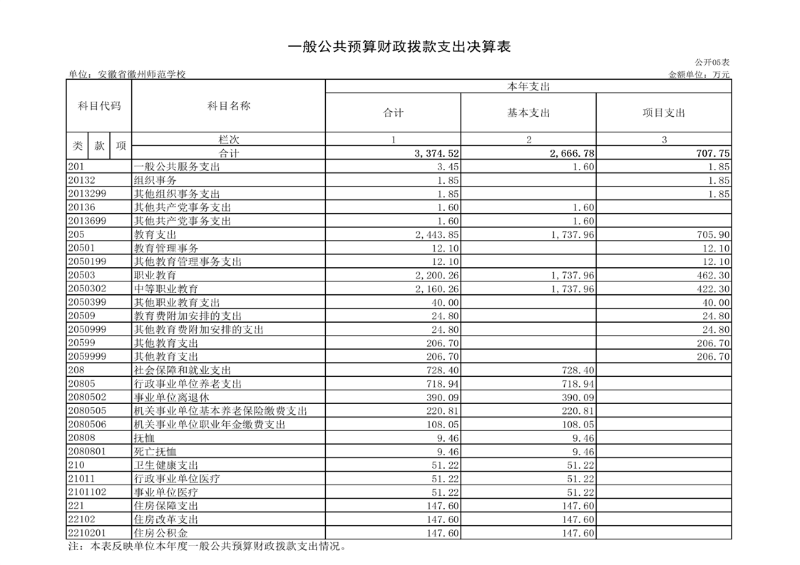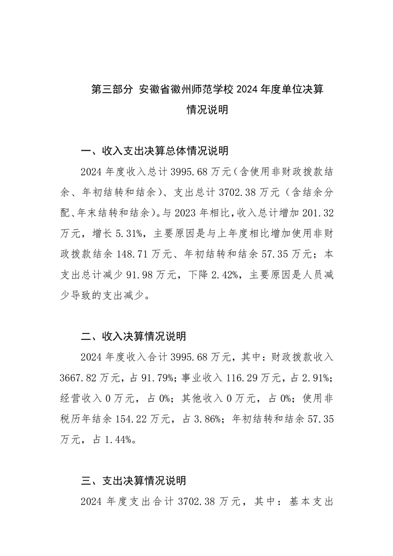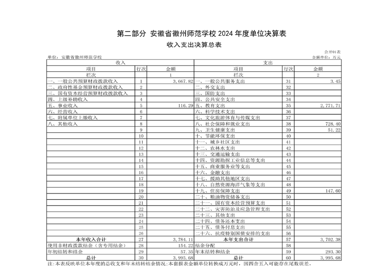 安徽省徽州师范学校2024年度单位决算公开