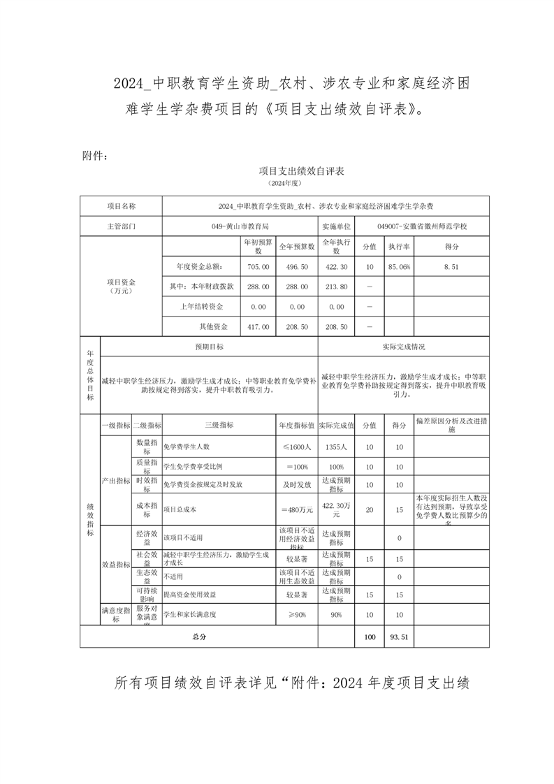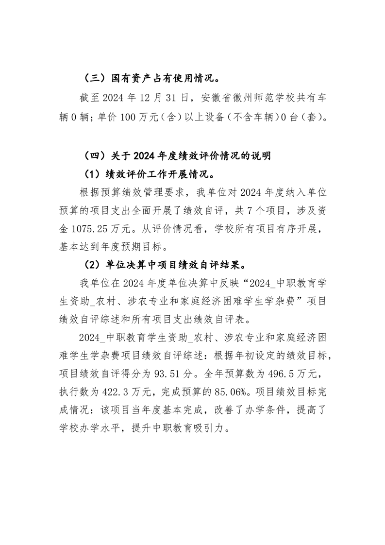 安徽省徽州师范学校2024年度项目支出绩效自评表清单.rar