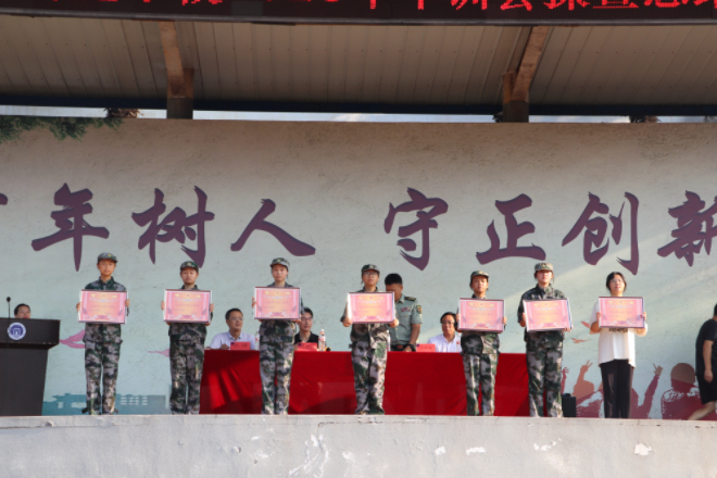 在颁奖环节,人武部及学校相关领导依次为“军训优秀学员”“军训先进班级”颁发奖状、奖品,那就让我们看看都有哪些个人和班级获奖了吧~