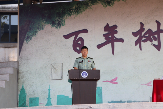 徽州师范学校副校长洪锋同志代表学校向全体参训教官、班主任和25级新生表示衷心的感谢。他高度肯定了新生们在军训中展现出的顽强拼搏的意志和团结拼搏的精神,并寄语全体同学,将军训中的收获积极融入未来的学习、生活,以青春之我,创青春中国。