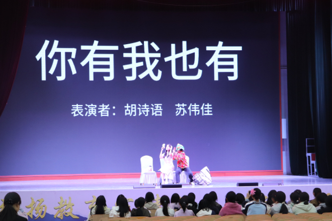 随后,精彩的节目接踵而至。在舞蹈《像你这样的朋友》中,同学们用默契互动传递友谊温情;在“反对校园欺凌”为主题的表演中,《暴雨之下》引发全场共鸣,同学们用艺术之力呼吁关注校园欺凌;朗诵节目《青春奋斗正当时》中,同学们站姿挺拔,以铿锵有力的语调诠释“奋斗”的内涵,字句间满是对青春的热忱,让在场观众感受到向上的力量;歌曲《淋雨一直走》,演唱者以清亮嗓音唱出“有梦就别怕痛”的勇气,轻快旋律带动全场氛围;小品《手机综合症》以轻松幽默的方式批判了当下社会对手机过度依赖的现象,引发同学们对健康生活方式的思考......最后活动在整齐嘹亮的合唱《明天会更好》中圆满结束。