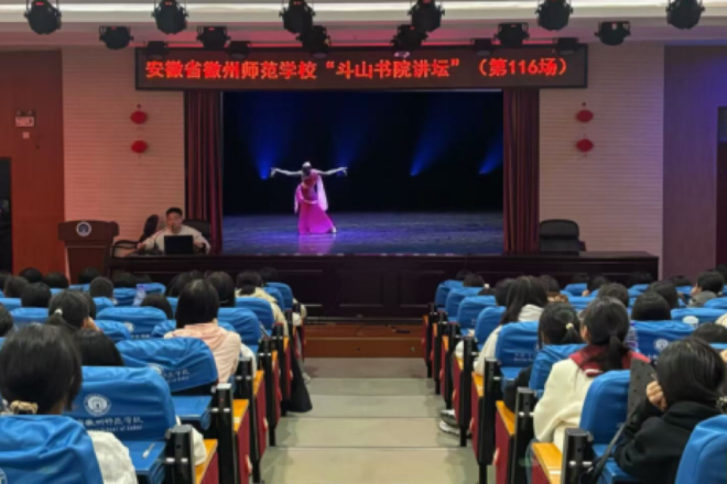 为弘扬中华优秀传统文化,丰富师生精神文化生活,11月5日下午,一场题为 《舞韵中华 中国民族民间舞的审美与传承》的专题讲座在我校报告厅精彩开讲。本次讲座特由年轻的舞蹈老师王鹏飞担任主讲,百余名学生听讲。
