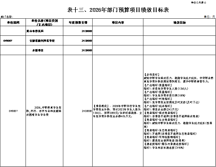 安徽省徽州师范学校2026年度项目支出绩效目标.rar