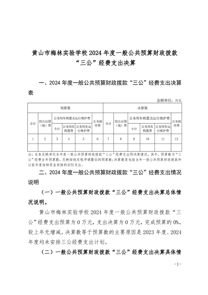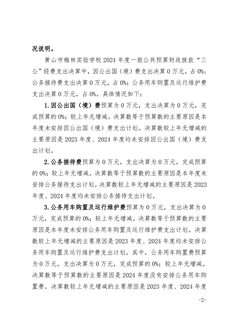 黄山市梅林实验学校2024年度一般公共预算财政拨款“三公”经费支出决算