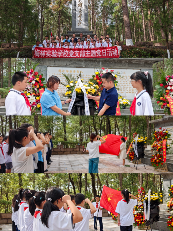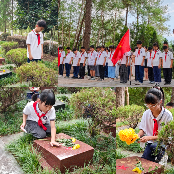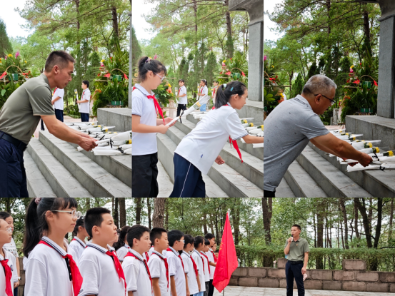 在国家第12个烈士纪念日和中华人民共和国成立76周年之际,恰逢中国人民抗日战争暨世界反法西斯战争胜利80周年、中国人民志愿军抗美援朝出国作战75周年,黄山市梅林实验学校以“赓续红色血脉 致敬革命英烈”为核心,精心策划系列爱国主义教育活动,通过实地祭扫、仪式感合影、影像观看等形式,让红色基因在党团队接力中代代相传。
