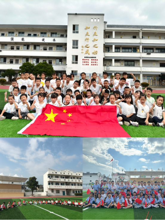 为进一步厚植家国情怀,学校同步开展“与国旗合影,向祖国致敬”活动。校园内,鲜艳的五星红旗在阳光下迎风飘扬,学生身着校服红领巾,与国旗合影留念。有的班级以整齐队列展现集体风貌,有的班级摆出各种姿势,每张照片中,学生们眼神坚定、笑容真挚,将对祖国的热爱定格在镜头里,也将“国家”二字深深烙印在心中。这一简单却庄重的仪式,让学生在与国旗的近距离接触中,强化了国家认同感与民族自豪感。