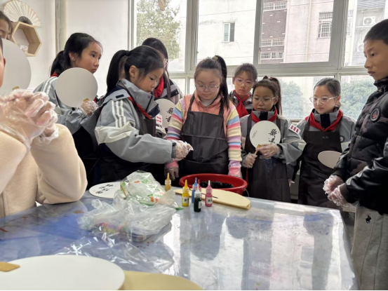 活动伊始,特校领导带领市梅林实验学校师生参观校园,细致介绍学校办学特色与校园文化,让普校师生直观感受特校的育人环境。随后,核心的走班课实践活动有序开展,双方学生按剪纸、手工皂、烘焙、漆画4门课程混合编组,每组配备特校专业指导导师与普校辅助导师,形成“双导师+普特融合团队”模式。课堂上,普校学生主动协助特校学生操作,分工协作完成实践任务,指尖流转间,精致的剪纸作品、清香的手工皂、香甜的烘焙点心、灵动的漆画作品相继成型,课堂里满是互助的温暖与收获的喜悦。