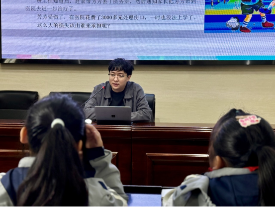 在预防电信诈骗宣讲环节,程律师聚焦小学生易遭遇的“免费游戏皮肤”“明星签名照”“屏幕共享验证”等典型骗局,通过真实案例拆解骗子套路,着重强调“不轻信、不点击、不转账、多求助”的防诈原则,提醒同学们要保管好家庭支付信息,遇可疑情况要及时告知家长和老师。