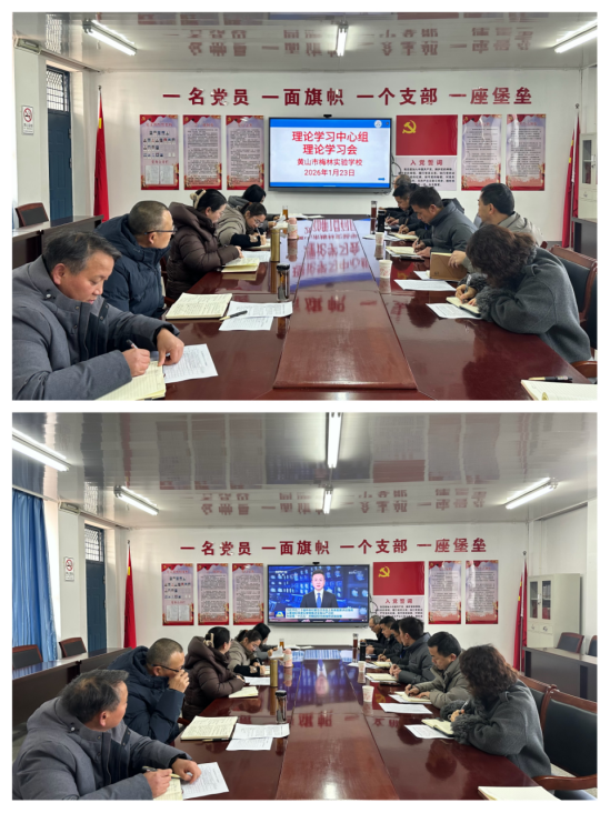 1月23日上午,黄山市教育局四级调研员张朝阳、学校责任督学曹肖峰莅临市梅林实验学校,通过实地查看、列席行政例会开展调研督导工作。会议由学校党支部书记、校长程玮峰主持,中层以上干部参会。