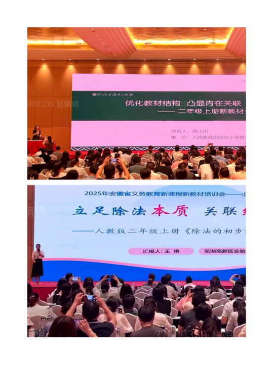 上午,教师们先观看省教科院王勇院长的开班动员讲话视频,明确了此次培训的意义与目标。随后,人教社小学数学教研专家周小川主任以《优化教材结构,凸显内在关联》为题作讲座,深入解读对人教版小学数学二年级新教材。接着,芜湖高新区实验学校王艳老师围绕人教版二年级上册第三单元第三课时《除法的初步认识》进行教学说课,为参会教师提供了宝贵的课堂实践参考。