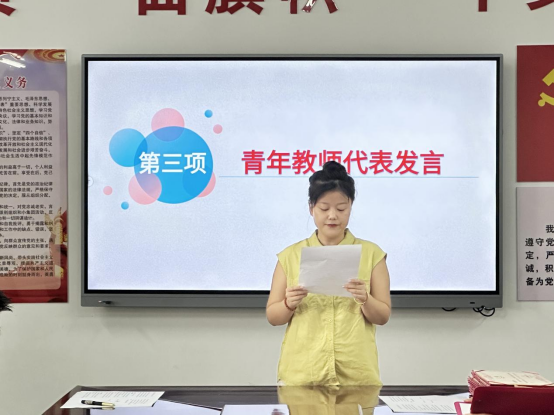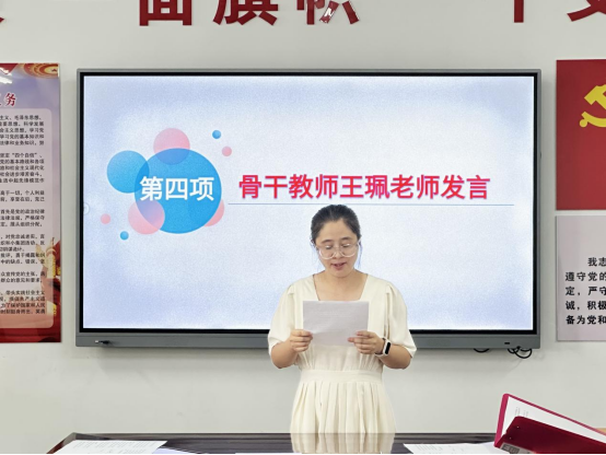 接下来,青年教师代表李心怡老师上台发言。她表示,将珍惜此次学习机会,以谦逊态度向师傅请教,在实践中积累经验,努力提升自身教学能力。紧接着,指导教师代表王珮老师发言,她承诺将会毫无保留地分享教学经验与育人心得,以身作则带领青年教师共同进步,助力其早日成为独当一面的优秀教师。