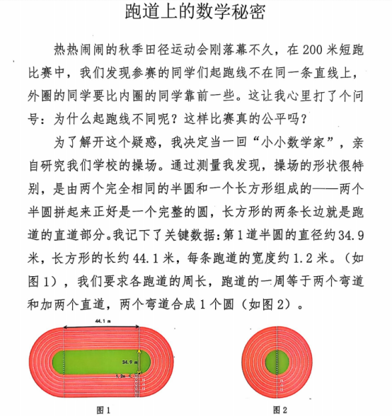 赛场上,孩子们不再是单纯的观众或运动员,而是带着问题的“小小研究员”。“200米比赛为什么外圈选手起跑线更靠前?”“1道起点要后移多少才能保证公平?”“400米跑过弯道后变道的数学道理是什么?”带着这些源于赛场的真实疑问,同学们在体育老师的专业协助下,手持卷尺、记录本,蹲在跑道旁仔细测量道宽、弯道半径,专注记录每一组数据。回到教室后,大家围坐在一起,运用“圆的周长”公式反复演算,在草稿纸上绘制示意图、整理对比表格,一步步推导得出结论。
