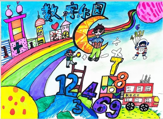 在孩子们眼中,数字不只是符号,更是可以变身的小精灵。他们挥动彩笔,把数字“变”进了画里——数字“1”,成了一支挺拔的铅笔,写写画画勾勒童年;数字“2”,变成一只扭动的小蛇,俏皮又可爱;数字“3”,化作弯弯的公路,奔跑着小汽车的梦想……