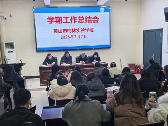 教育之路,唯有常回望、勤反思、善谋划,方能守正创新、行稳致远。2026年2月7日下午,黄山市梅林实验学校2025-2026学年度第一学期结束工作会议如期召开,全体教职工齐聚一堂,共同复盘学期过往,明确假期要求,共绘新学期发展蓝图。