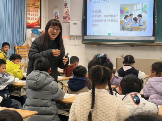 方桂花老师执教一(3)班《错了就要改》一课。她立足低年级学生的年龄特点与生活实际,以生动有趣的情境导入,通过故事讲述、生活案例分享、互动交流等形式,将抽象的道理转化为直观易懂的内容,引导学生认识错误、正视错误、勇于改正错误。整堂课氛围轻松愉悦,教学环节层层递进,充分调动了学生的参与热情,让学生在体验中明白知错就改的重要意义,有效落实了立德树人的根本要求。