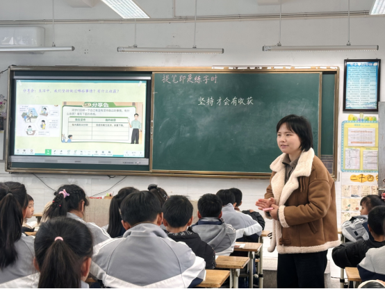 在二(2)班,张宇老师带来《坚持才会有收获》一课。张老师紧密结合学生的学习与生活经历,设计了丰富的实践体验活动,通过小组讨论、事例分享、情感共鸣等方式,引导学生感受坚持的力量,理解坚持与收获的关系。课堂上,张老师教态亲切自然,引导得当,充分发挥学生的主体作用,让学生在思考与交流中树立持之以恒的意识,展现了良好的教学素养。