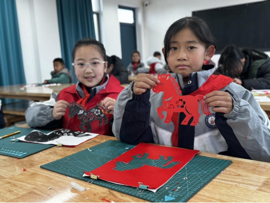 为传承徽州非遗文化,传递新春温暖,2026年1月28日上午9:00,黄山市梅林实验学校美术教室内暖意融融,“导师伴剪·非遗迎春”留守儿童马年剪纸文化体验活动如期举行。留守儿童们在美术导师和学生导师的指导团队陪伴下,沉浸式感受剪纸艺术魅力,寄托新春期盼。