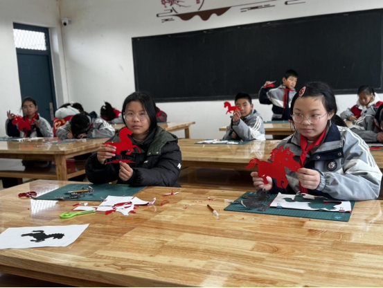 导师伴剪 非遗迎春——黄山市梅林实验学校开展留守儿童剪纸迎马年活动