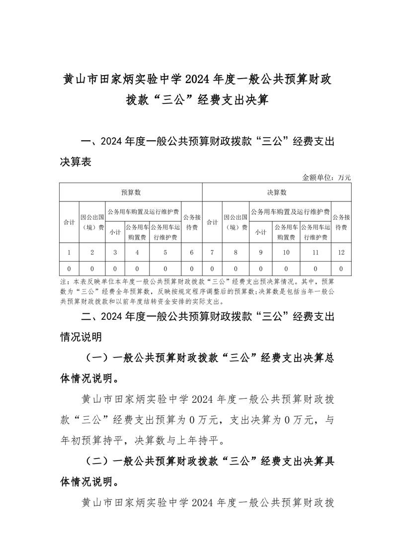 黄山市田家炳实验中学2024年度一般公共预算财政拨款“三公经费”支出决算.pdf