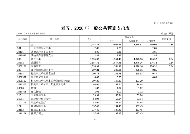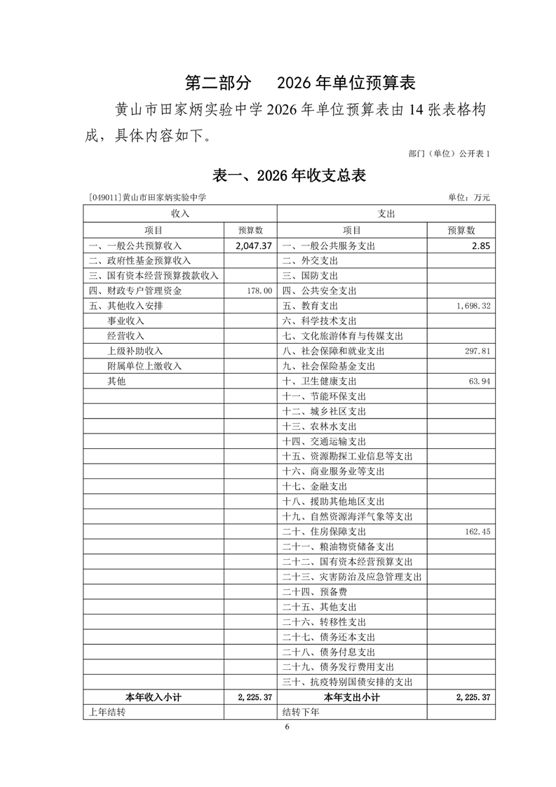黄山市田家炳实验中学2026年单位预算公开.pdf