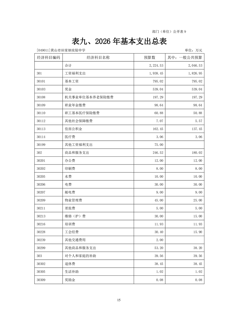 黄山市田家炳实验中学2026年部门预算公开表.xls