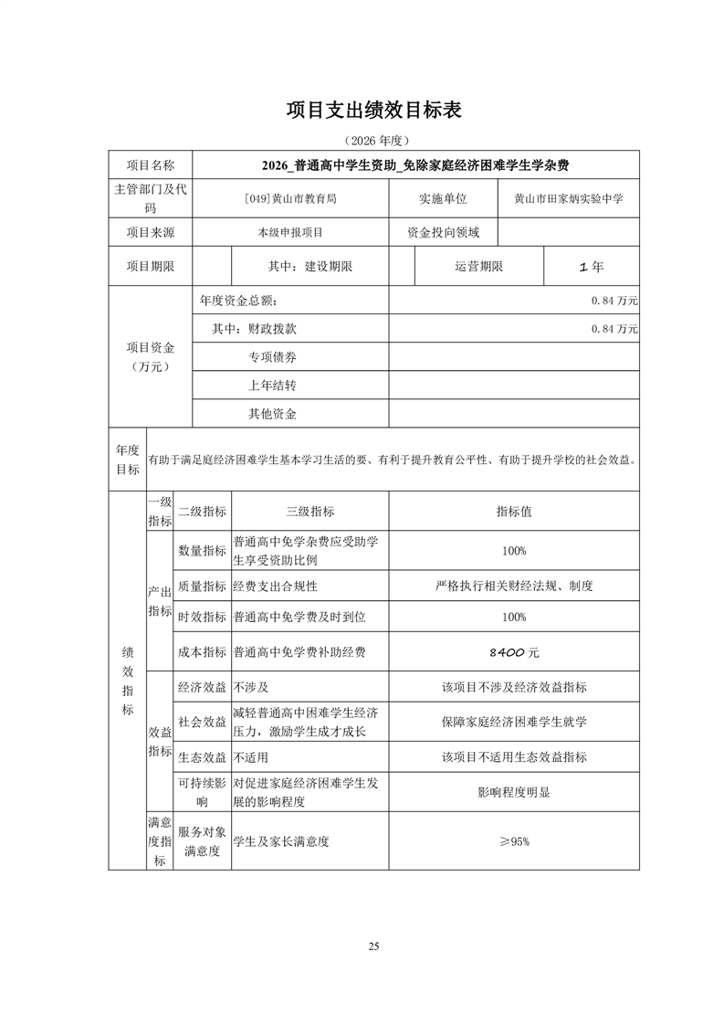 黄山市田家炳实验中学2026年度项目支出绩效目标.zip